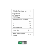 - ظرفیت: 7.2 آمپر ساعت (Ah)