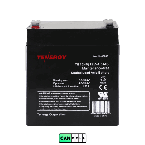| Tenergy TB1245 | ۴.۵Ah | AGM / SLA | ۳ تا ۵ سال | یو پی اس، سیستم امنیتی |