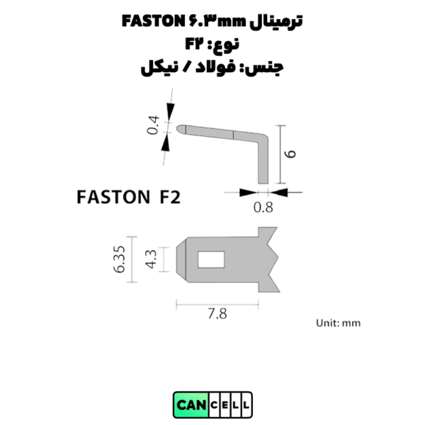 - نوع اتصال: اتصال Faston نوع F2 (6.3 میلیمتر)