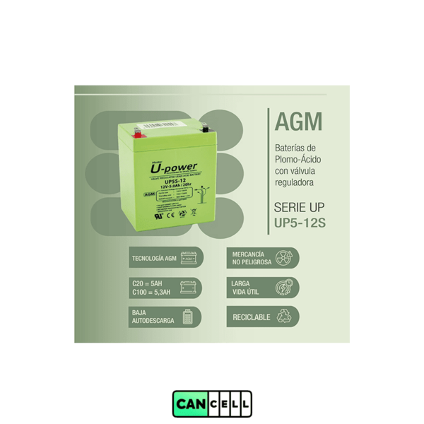 باتری U-Power AGM 12 ولت 5 آمپر