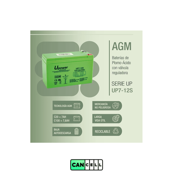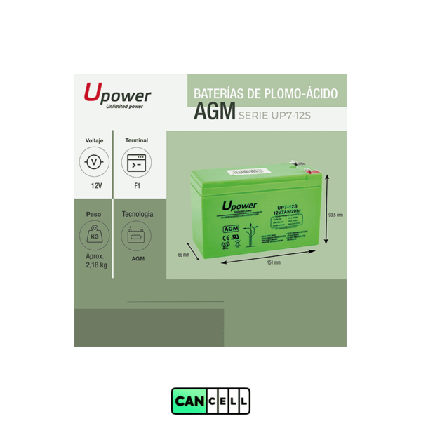 مشخصات باتری U-Power AGM 12V 7Ah F1 4.8mm